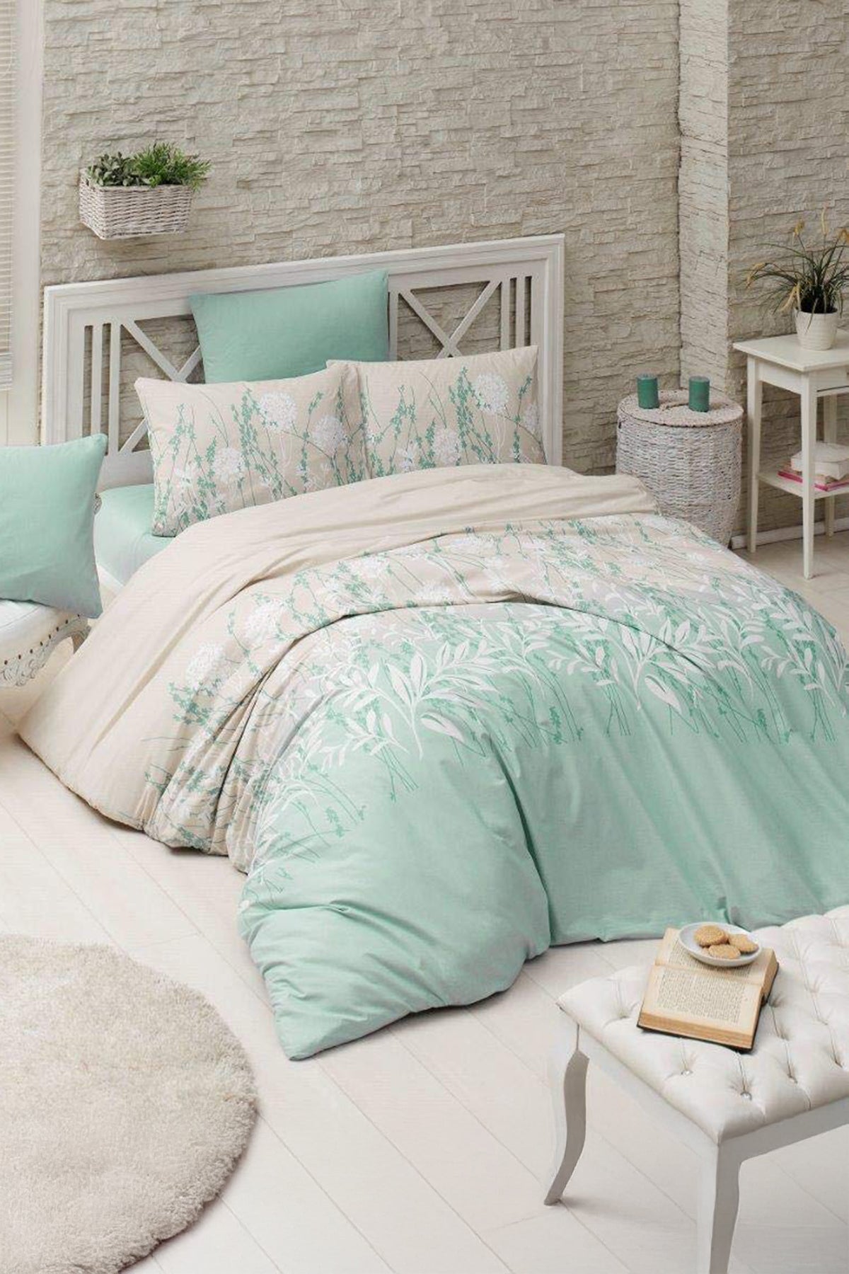 Set lenjerie de pat, DemoHome DEPPO, dublu king size din 100% bumbac ranforce cu model de PLANTA VIETII MENTA, VERDE acasa - cearcaf plic, cearceaf pat, 2 fete de perna