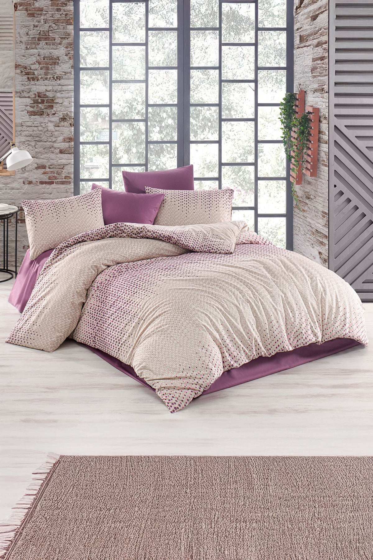 Set lenjerie de pat, DemoHome DEPPO, dublu king size din 100% bumbac ranforce cu model de PULSE DE ENERGIE, LILA acasa - cearcaf plic, cearceaf pat, 2 fete de perna